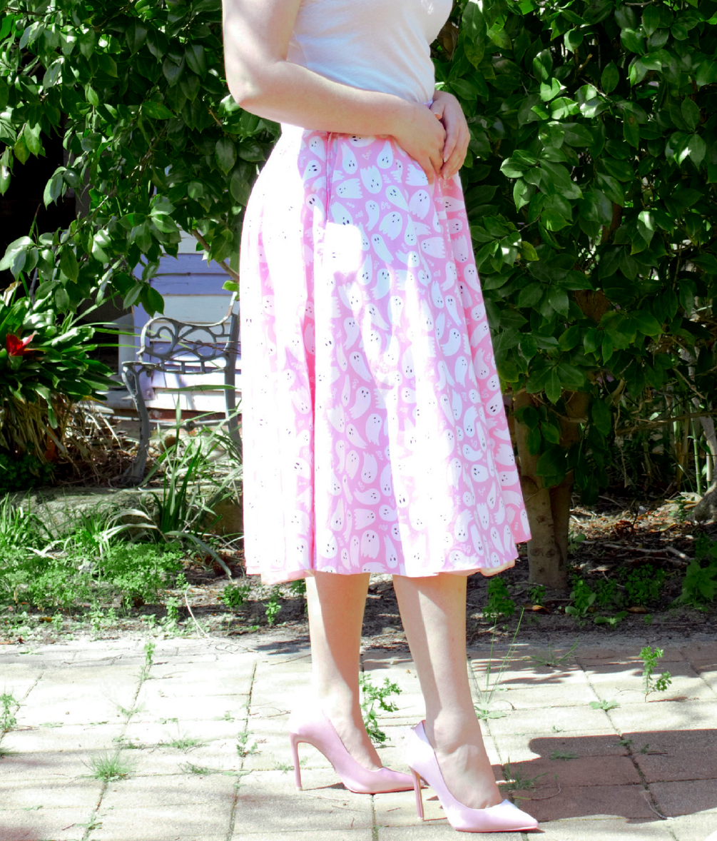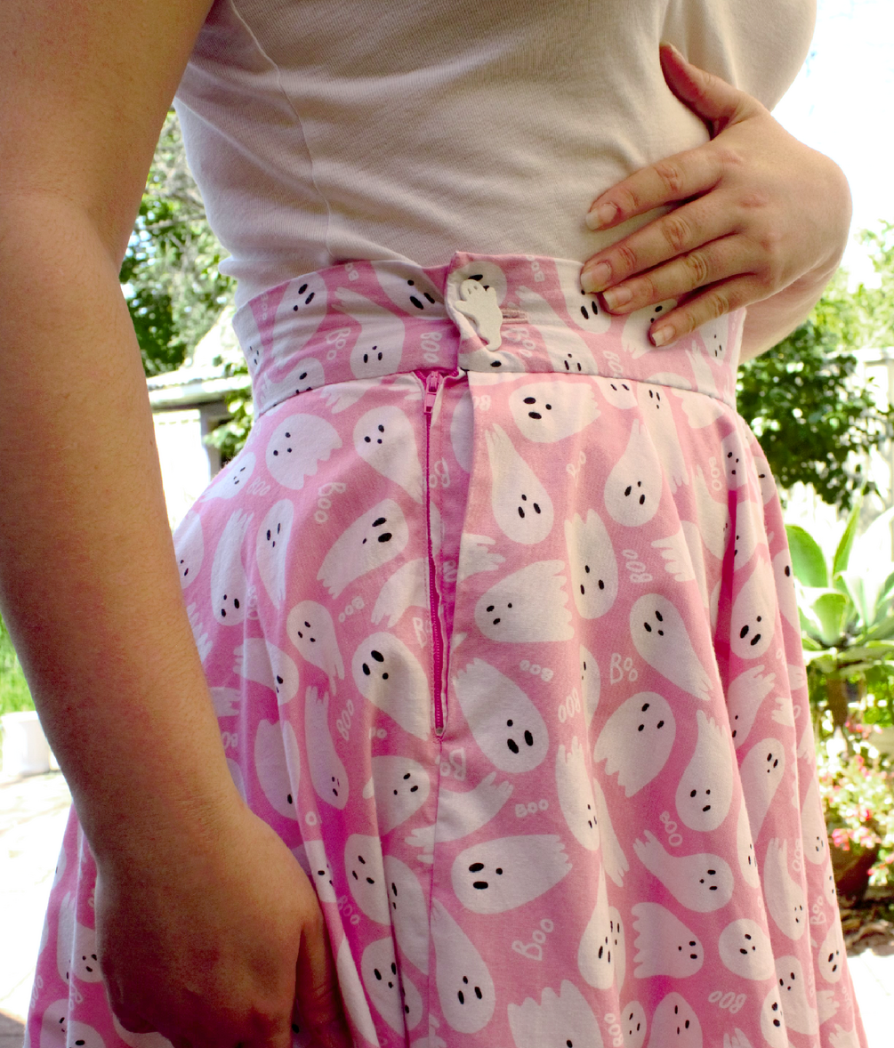 Here's the staple wardrobe item for your sewing pleasure - a full circle, fully lined skirt with TWO deep pockets and a hidden side zipper, closed securely with your fave unique button from your stash! This tea-length (70cm long) skirt pattern is beginner-friendly and is designed primarily for cottons and non-stretch fabrics.