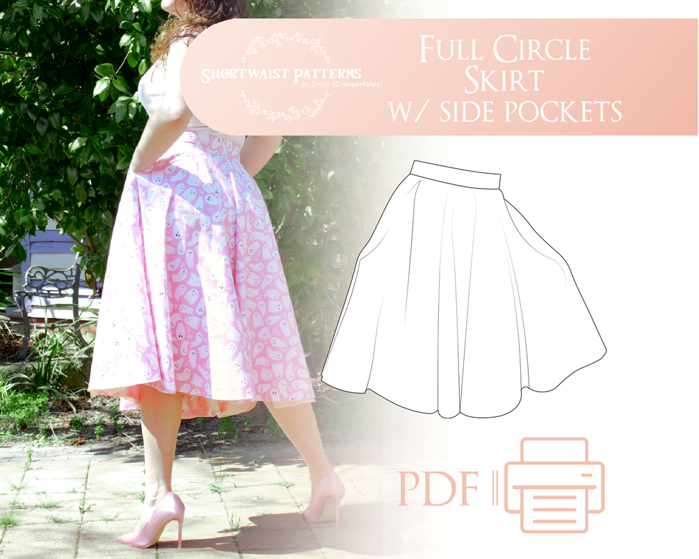 Full Circle Skirt with Side Pockets | PDF Pattern Size 6-30